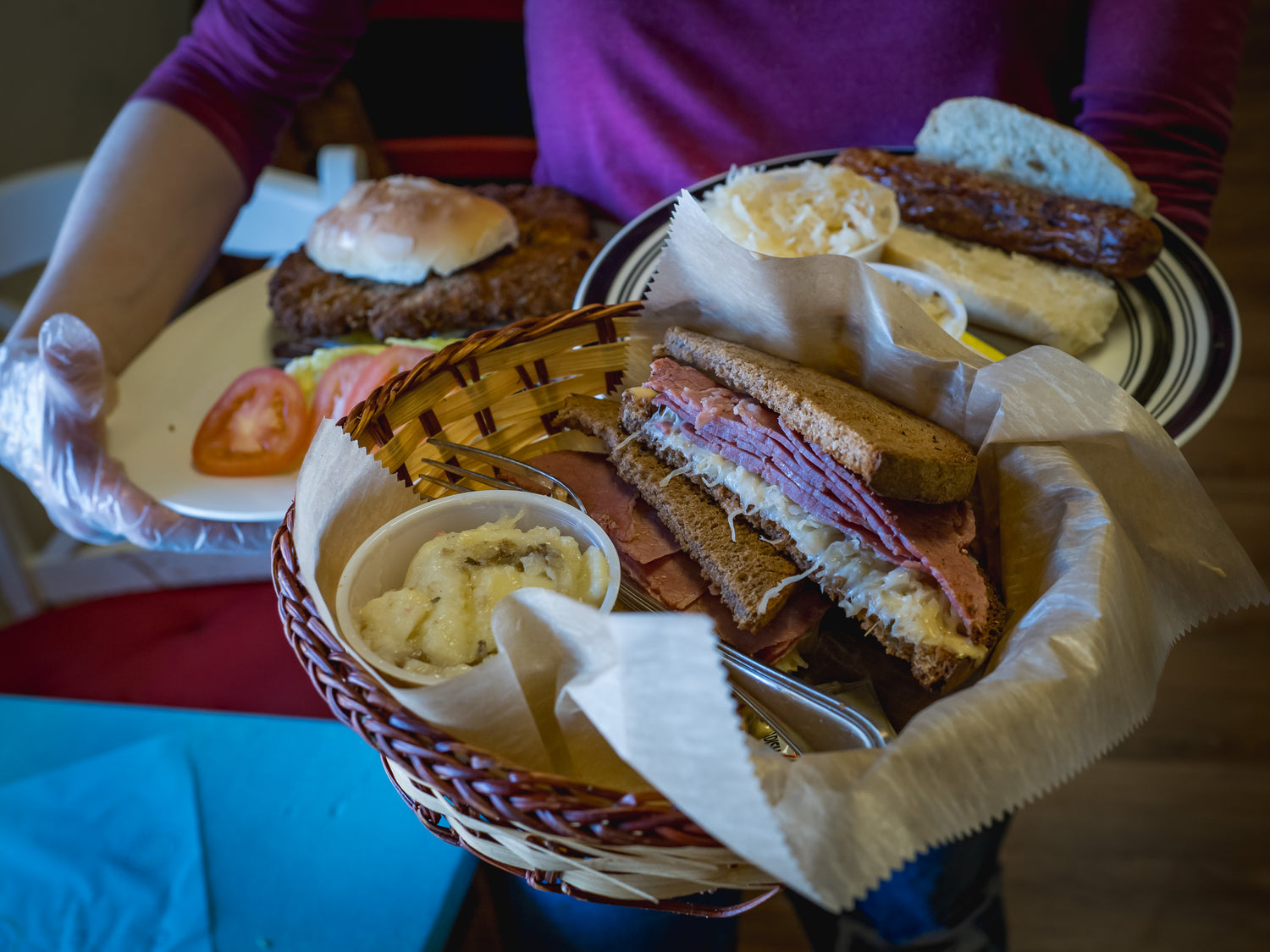Bratwursts - Have yours with Broetchen or as our German Gasthaus combo with Warm Potato Salad, Sauerkraut, & Broetchen. We even have Currywurst!